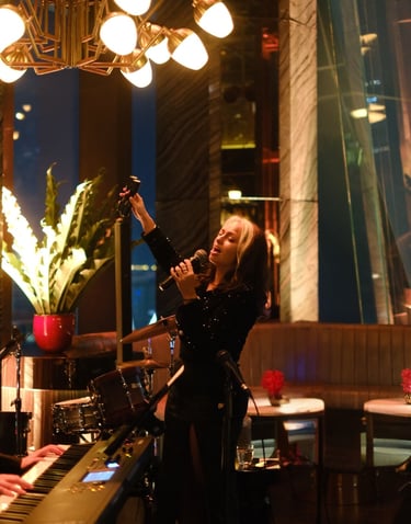 "She has managed to combine solid business sense with great performance skills, which is an unusual combination for many artists. Alba was professional, friendly, on time, and always appropriately dressed, making her one of our excellent choices for major events at the hotel. Ms. Santos was a delight to work with, as she always demonstrated her great passion for music and her kind, outgoing personality. Her positive attitude had a captivating effect on our guests and hotel staff alike. She always ensured her performances attracted guests and set a relaxing and upbeat tone."